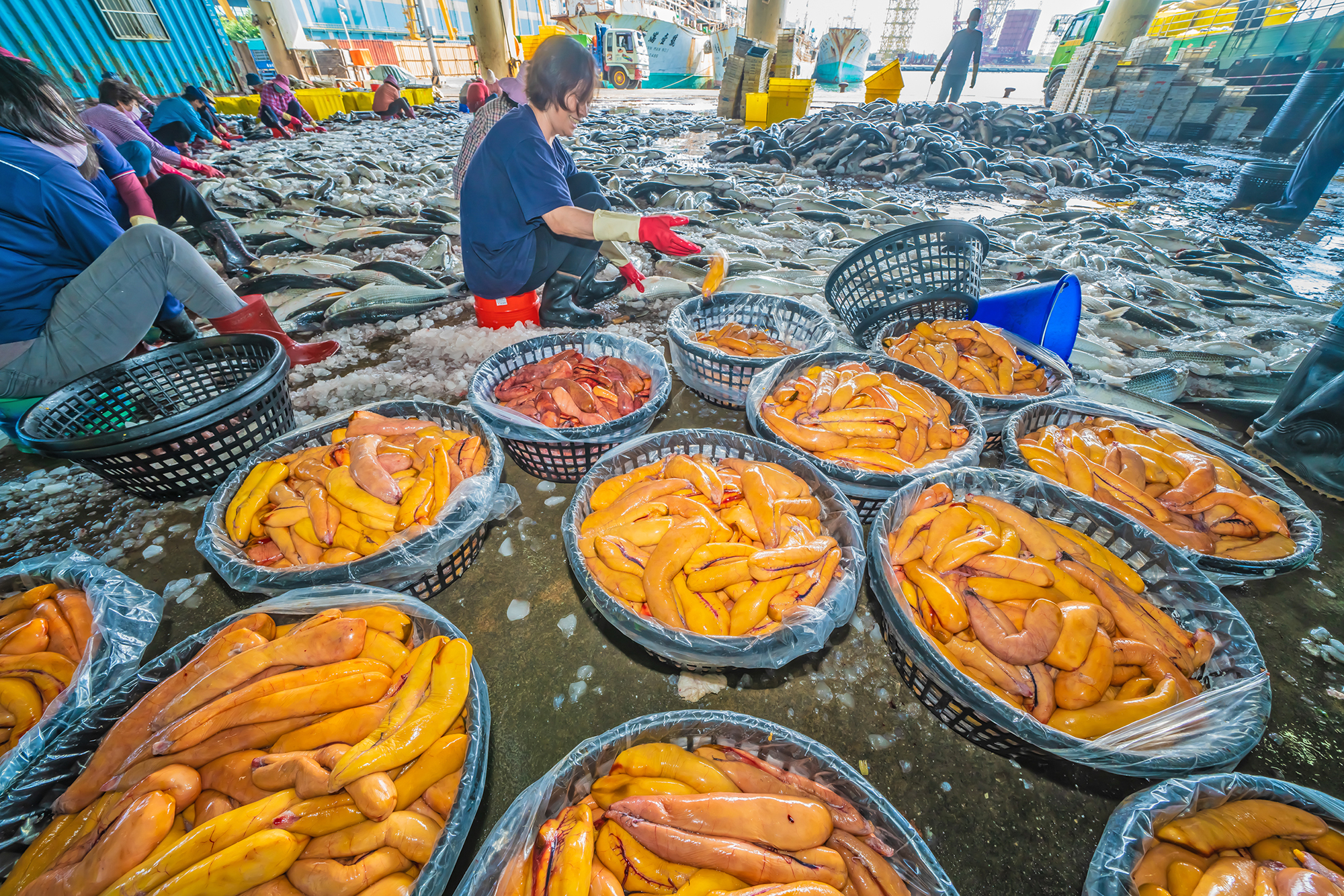 Kaohsiung’s Xingda Harbor is known as “the home of mullet,” and has long been a bastion for catching this fish, which fisher folk call “black gold” (the Chinese name for mullet, wuyu, means “black fish”). Wild mullet are an important economic product for nearshore fisheries, and during the mullet fishing season, as boats come in with their holds full of fish, workers at Xingda Harbor stay very busy processing the fresh catch.