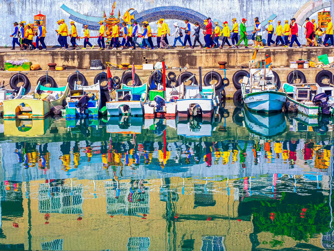 The “Welcoming Wangye” ritual takes place once every three years in Donggang Township, Pingtung County. This is a major religious and cultural ceremony that has been carried on in the area of Donggang, Liuqiu, and Nanzhou townships for over a century. The Wangye boat used on Xiaoliuqiu Island is the smallest of the three townships, but the Wangye pilgrimage procession can be seen going everywhere, even along this narrow pathway beside the fishing harbor.