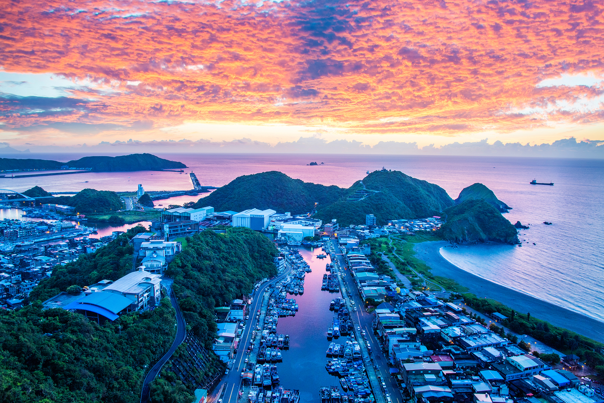 Keelung in Northern Taiwan is surrounded on three sides by mountains, while one side faces the sea. Its “ria” landform (a coastal inlet formed by the partial submergence of a river valley) provides a natural harbor where trade and tourism have long flourished. Keelung’s Zhengbin Fishing Harbor is a historic fishing port located in the southern part of Heping Island, just offshore from Keelung. The buildings along the waterfront are painted in charming pastel colors, creating a nostalgic cityscape.