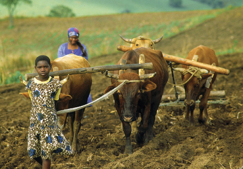 Farmers in Swaziland used to till their land with a single ox and plow. While there is nothing wrong with this, one ox is not strong enough to break up the hard soil and this affects overall efficiency and results in poor yield. Missions taught the farmers to use two or more oxen on each plow and designed ox plows and yokes better suited to local conditions, thereby improving soil preparation.