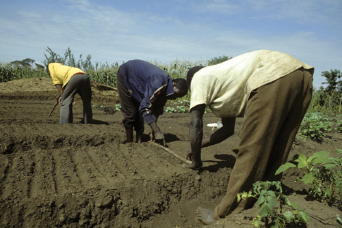 Corn (maize) is the staple food in the diet of many Africans, but many areas of the continent lack fertile land and money to fertilize it. As a result, planting is a much less refined art. They don't fertilize, irrigate, or weed, which leads to lower production, frequent food shortages, and reliance on aid from advanced nations.