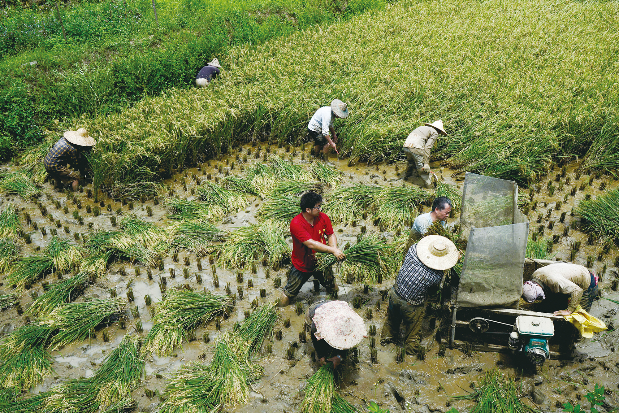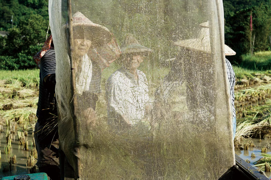 The team that is helping Jian Qiuyang includes ten elderly men, three elderly women, and one farmer in his 30s; added together, their ages surpass 1000 years! They begin harvesting before six in the morning, and work straight through to the intense heat of noon before they finish reaping Jian’s two-tenths of a hectare. Down in the plains, a harvester could complete a similar area of rice fields in less than an hour, meaning that Jian and his helpers work seven times as long to do theirs. Even when they begin work early in the morning, they are immediately soaked in dew and sweat over their whole bodies, and under the intense sun they have to endure the pain of continually bending their backs, so the process is extremely arduous. Why go through such hardship? Jian replies without hesitation: “When you buy rice from me, that gives me the motivation to keep on going!”