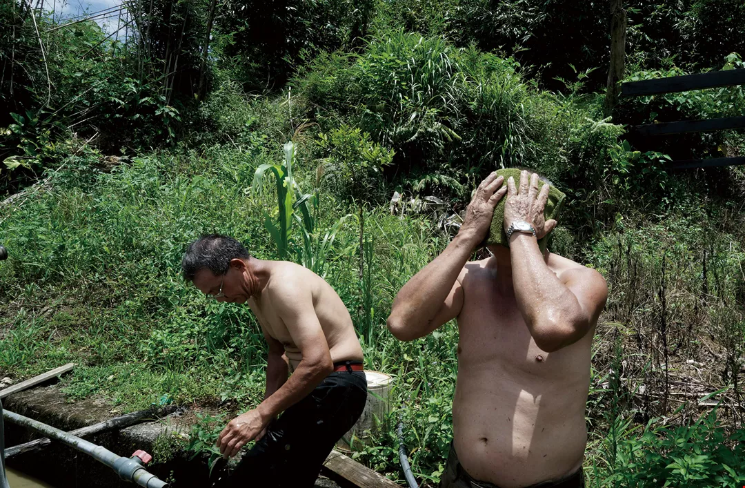 When they finish work at high noon, the farmers cool off with water from a mountain spring.
