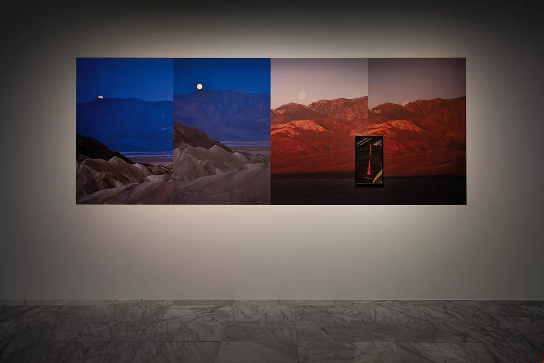 In other words, Wang chooses to reference the instability of people’s memories; therefore the exact locations of her landscapes do not matter. Furthermore, not all of the exhibited landscapes are captured by her. Employing the cinematic technique of “found footage,” Wang actually obtained some of her images from flea markets.