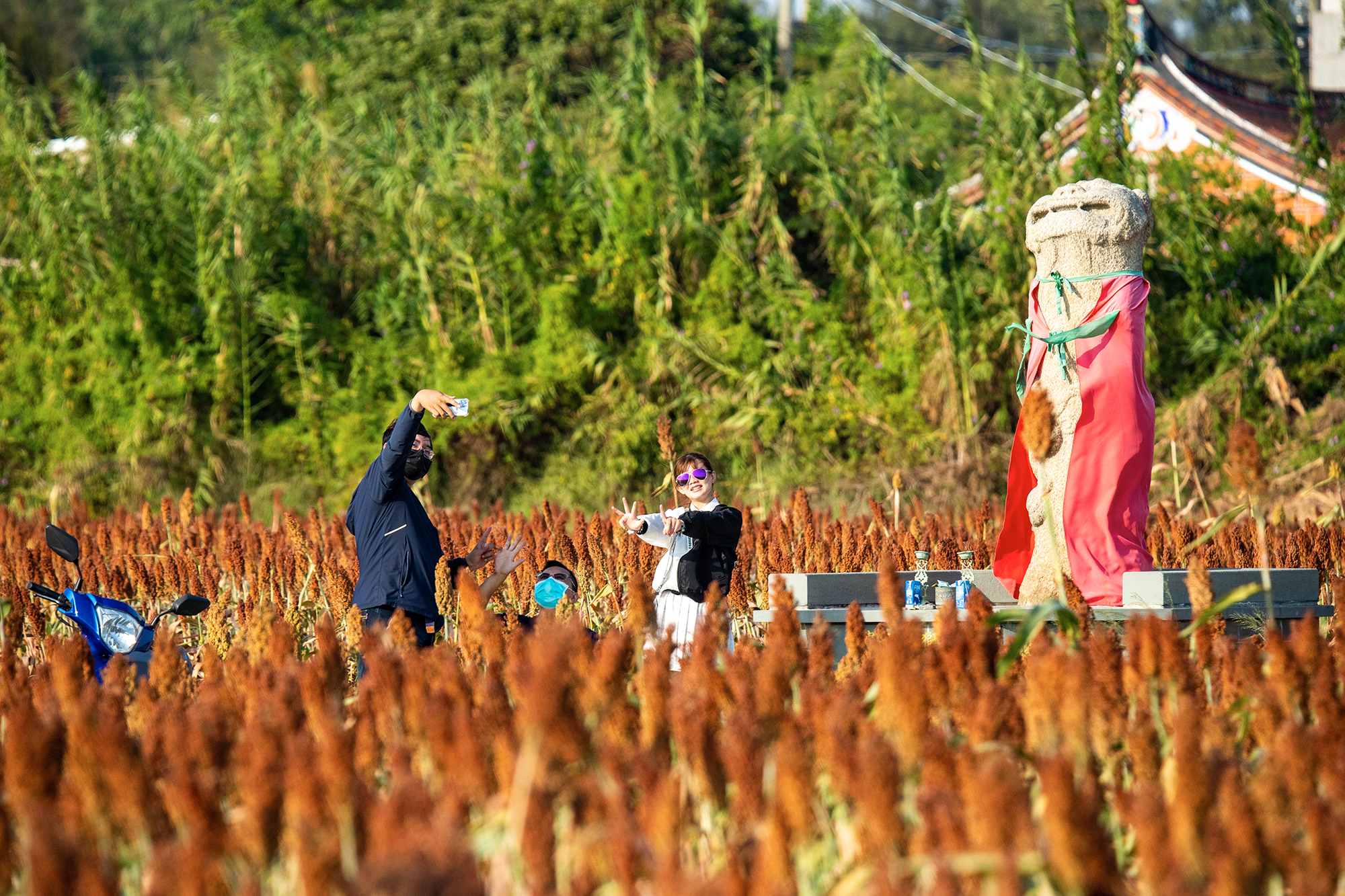 Belief in the Wind Lion God is unique to Kinmen. As forest cover disappeared from Kinmen many centuries ago, the island became increasingly exposed to the powerful northeasterly monsoon winds, and statues of the Wind Lion God were erected to ward off harm from the wind. There are more than 100 Wind Lion statues in Kinmen, each with its own form, some standing and others crouching, the tallest measuring 3.8 meters high and the shortest only 19 centimeters. The carving is variously crude or refined, while the faces have protruding round eyes and big grinning mouths. Some of the statues are childlike, others dignified. They are placed in many different locations, such as at the entrance to villages, in front of private homes, and on rooftops.