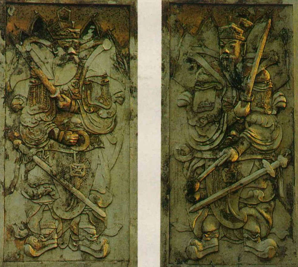The old city wall of Feng-shan-hsien, Tsoying, was the first clay & stone-built city wall in Taiwan, dating from 1722. The plaster effigies of guardian deities to the left and right of the outer gateway are executed in authentic detail.