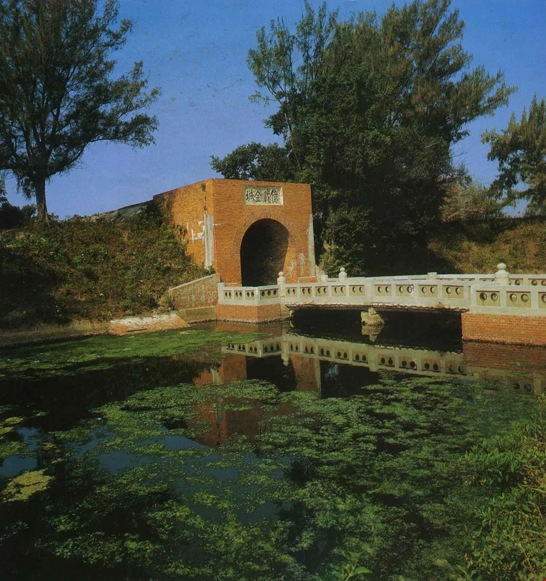 Designed by French engineers, the Erh-k'un-shen Fort at Anping, Tainan, is encircled by a moat and contained cannon for coastal defense.