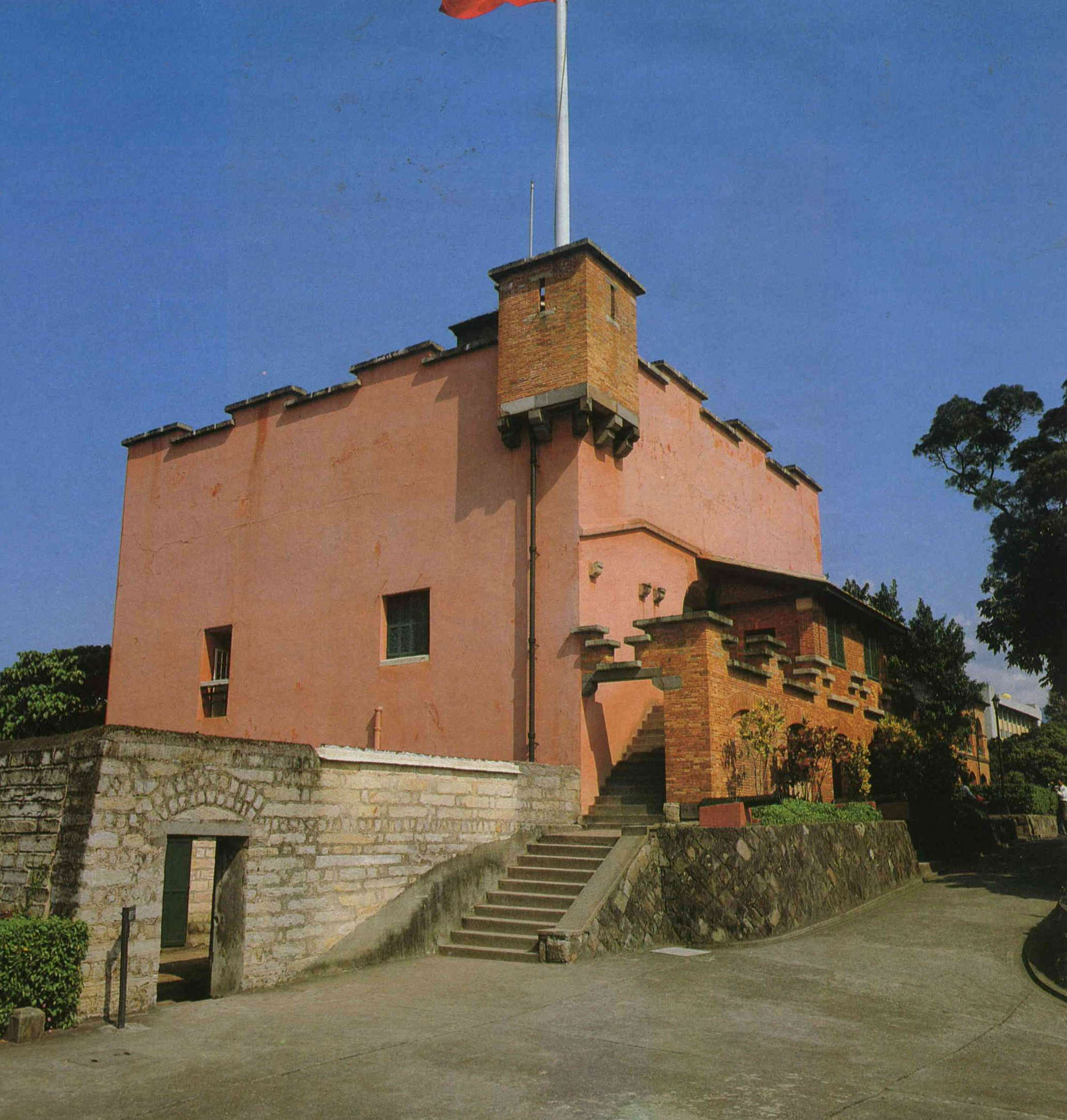 Fort San Domingo, Tamsui, with walls of brick and masonry two meters thick, was built by the Dutch on the site of a Spanish fort dating from 1629. At right is the former British consular residence.
