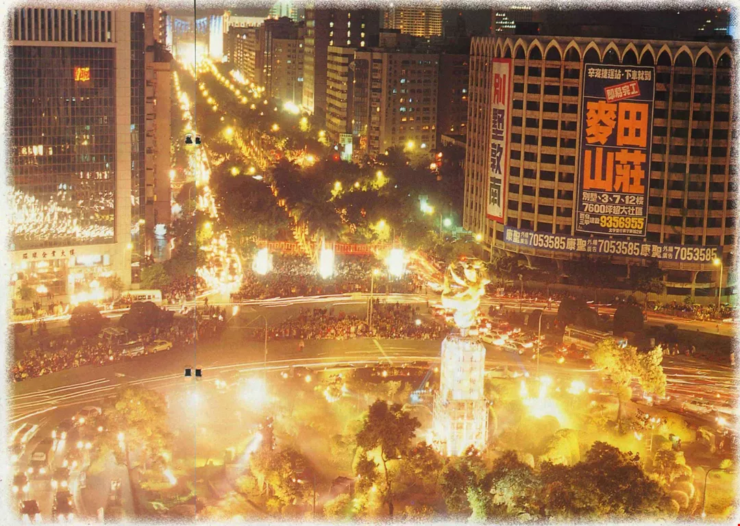 Taking a leap in time, in front of us is Jen-ai Road in Taipei City at the end of the 20th century. The lights glimmer as brightly as they ever did, but now the road is filled with Mercedes-Benzes.