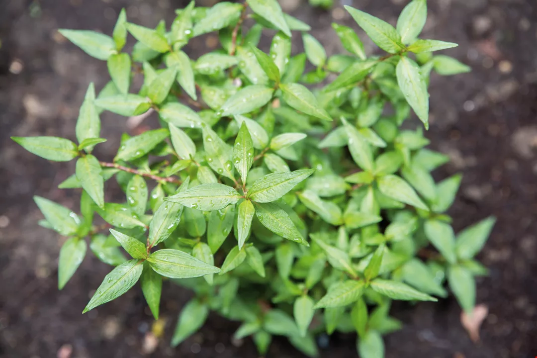Outside the exhibition, a seedbed is planted with aromatic plants to allow visitors to smell their fragrance and identify them based on shape. Pictured is Vietnamese coriander.