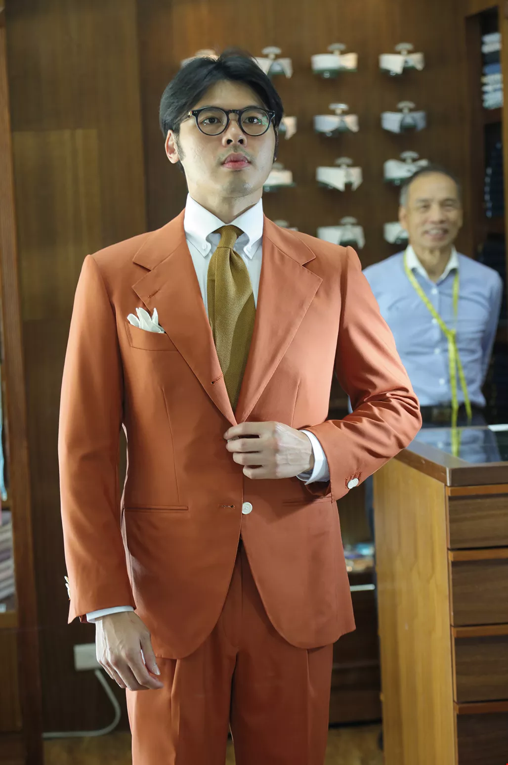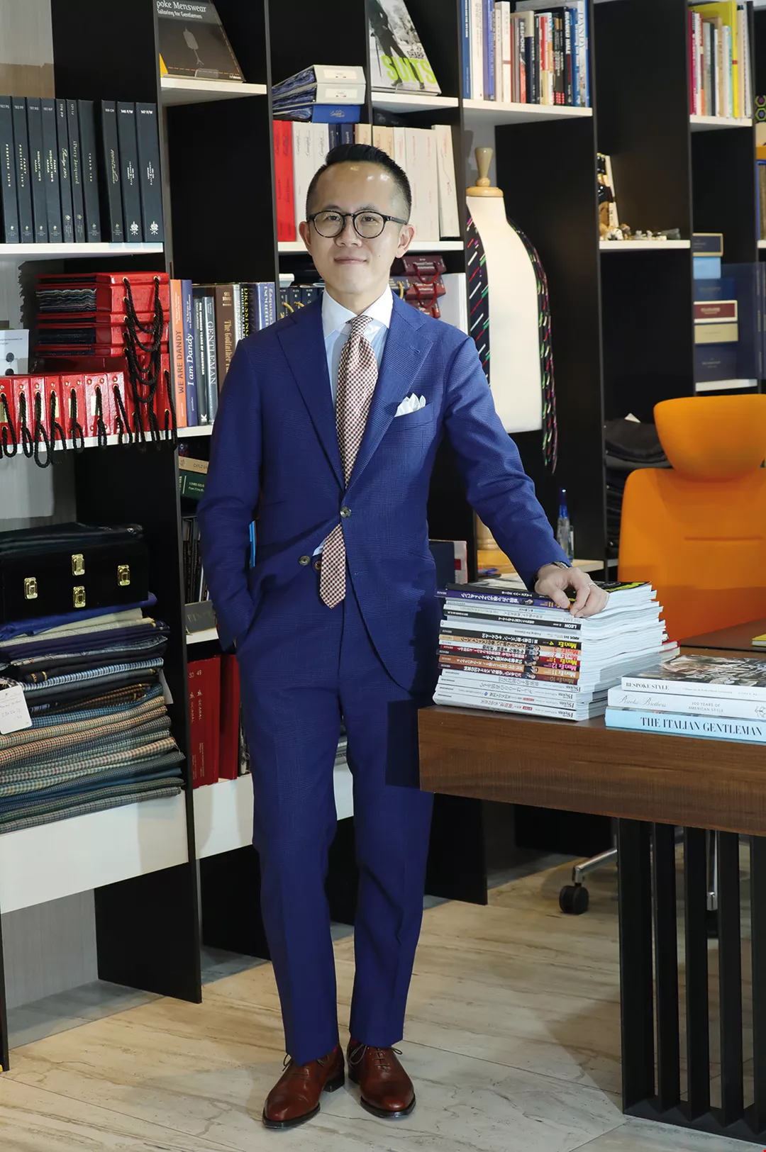 At first, Fan was designing for customers over 55. He discovered that although they could invest more money in a suit, they rarely were repeat customers. The younger generation, meanwhile, were boldly investing in themselves. Currently, Kaien’s average customer is about 35, and 80% of its clientele are repeat customers. The shop typically has about 30 new customers in a month. And there are even a group of friends that treat Kaien as a hangout spot, coming in often to touch base and discuss suits and accessories. Chris Chu is a regular who works in the restaurant industry. Suits are his work attire. A tailored suit that complements the lines of his body and that has a nice feel to its fabric makes him look good and adds to his confidence and sense of professionalism at work. The transformation it imparts is keenly felt.