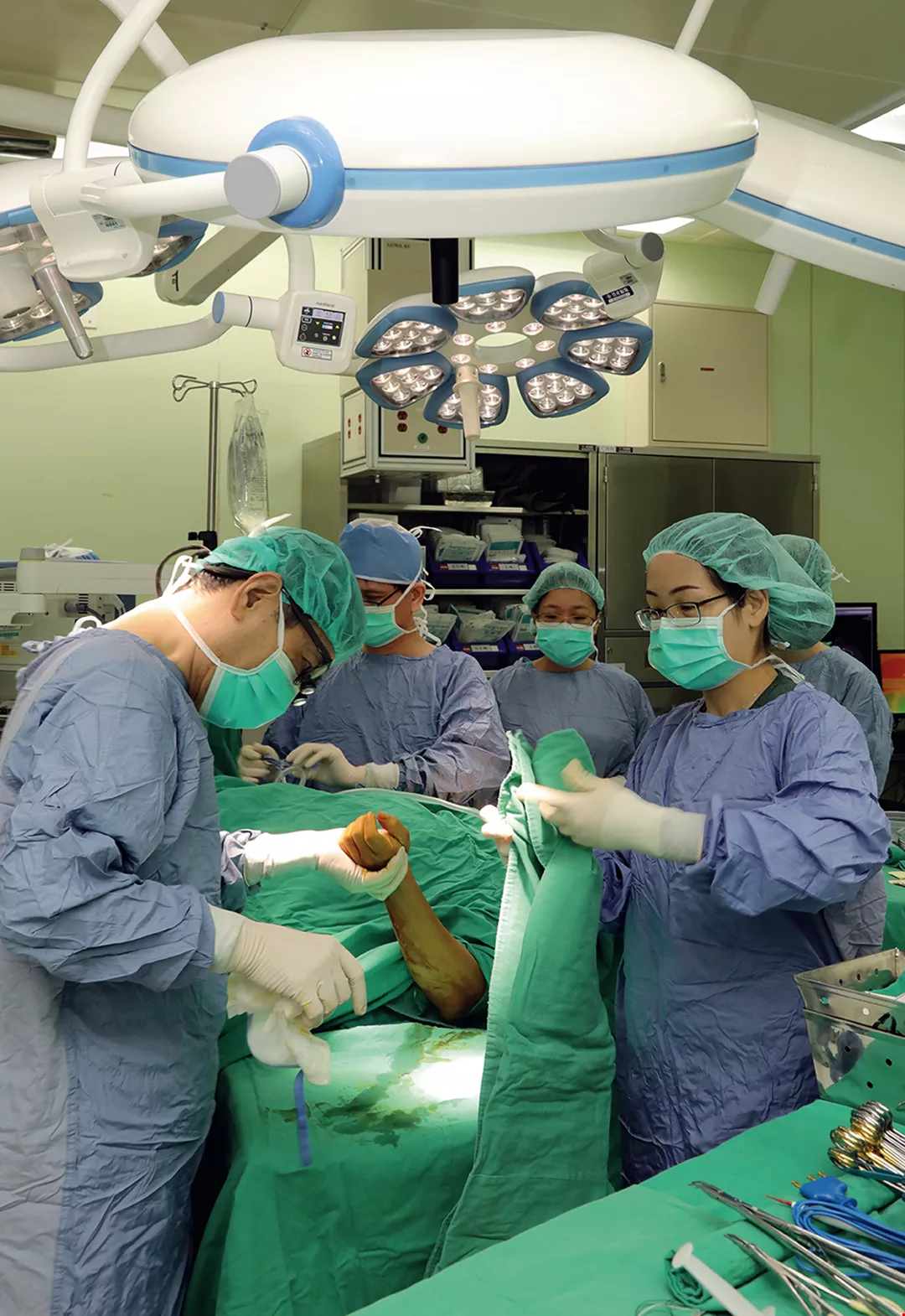 Therefore, through many years of effort Wei has led his medical team in gradually developing reconstructive techniques in a wide range of subfields that include vascular, neural, lymphatic, and tubular structure microsurgery. There is nowhere else in the world that offers such a comprehensive set of microsurgical techniques. Chang Gung’s Reconstructive Microsurgery Center can boast many other world-beating achievements too, such as having created the largest number of innovative surgical procedures, having the largest number of doctors who are internationally recognized authorities, having the largest intensive care unit for reconstructive microsurgery, having treated the largest number of microsurgery cases of any medical center, and having the most publications. These areas in which Chang Gung leads the world attract practitioners and researchers from around the globe to come to Taiwan to visit and to undertake advanced study.