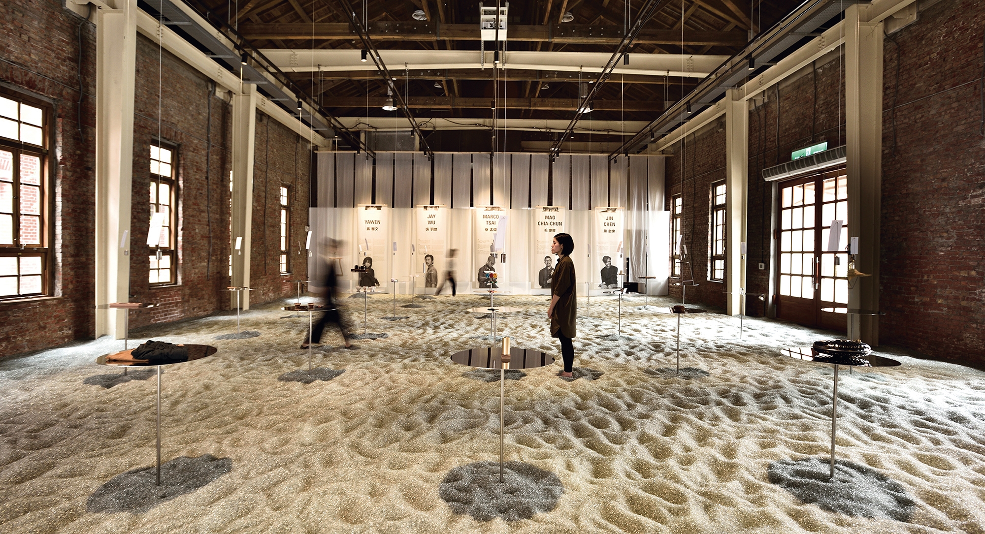 At the 2017 Creative Expo Taiwan, Spring Pool Glass spread out 40 tons of recycled glass to create the “Circular Economy Ocean.” Visitors were invited to take off their shoes and socks and wade in for a tactile experience while thinking about the meaning behind the circular economy. (photo by Wang Te-fan, courtesy of Spring Pool Glass)