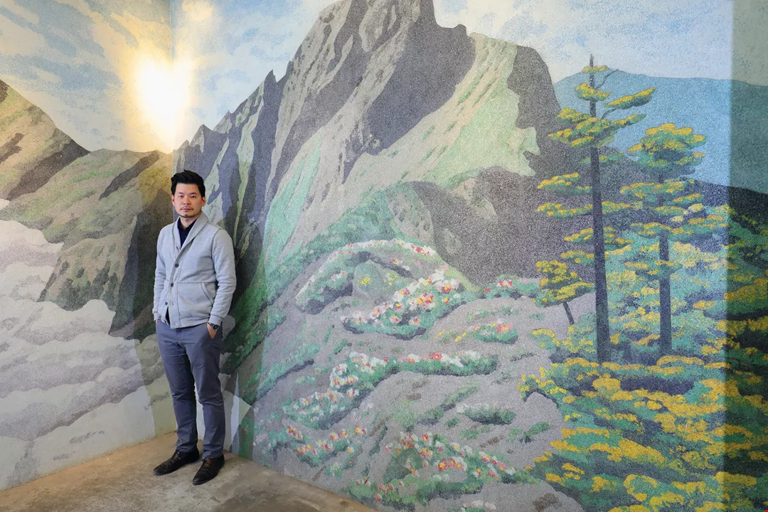 T.A. Wu explains that this picture of Yushan made using “glass stone” creates a 3D effect because the glass reflects light.