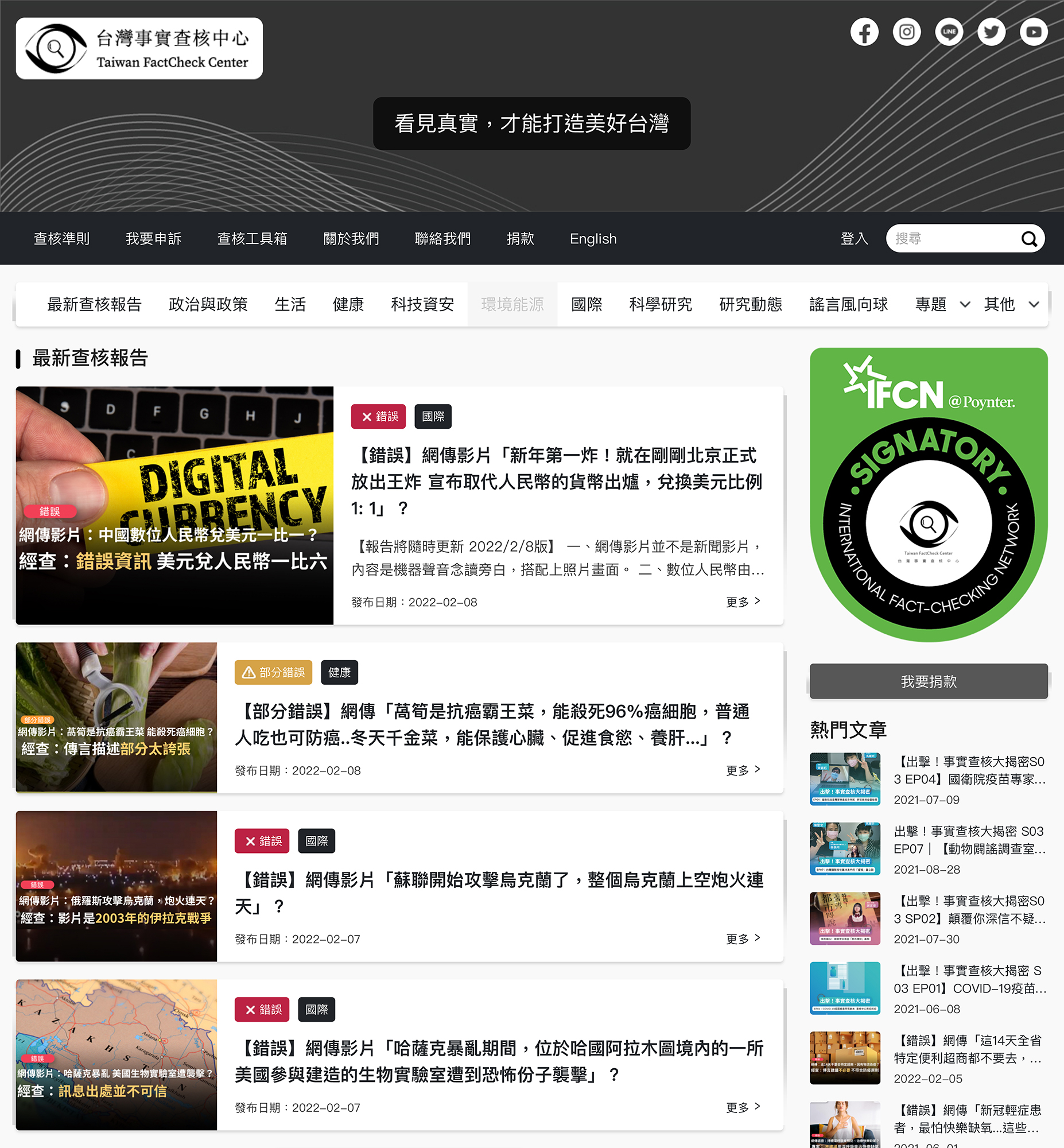 The Taiwan FactCheck Center uses its website to release fact-checking reports and share tips on how to spot misinformation.
