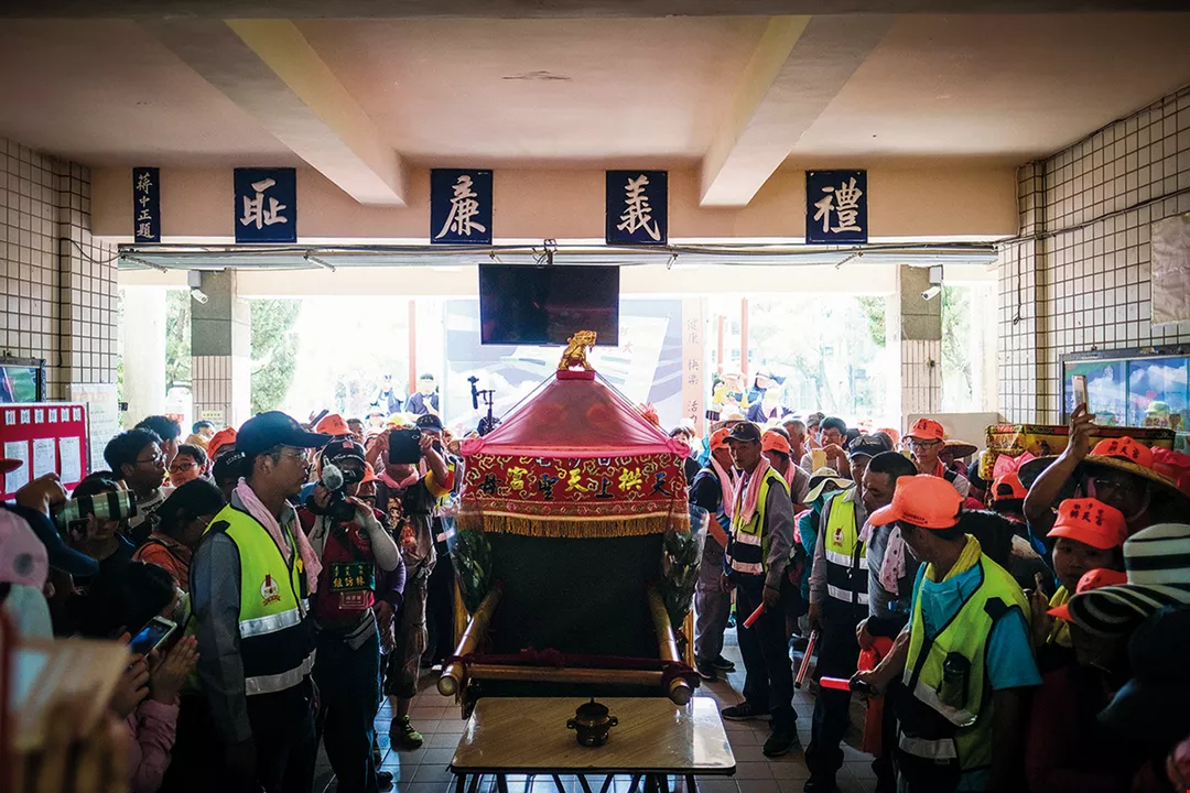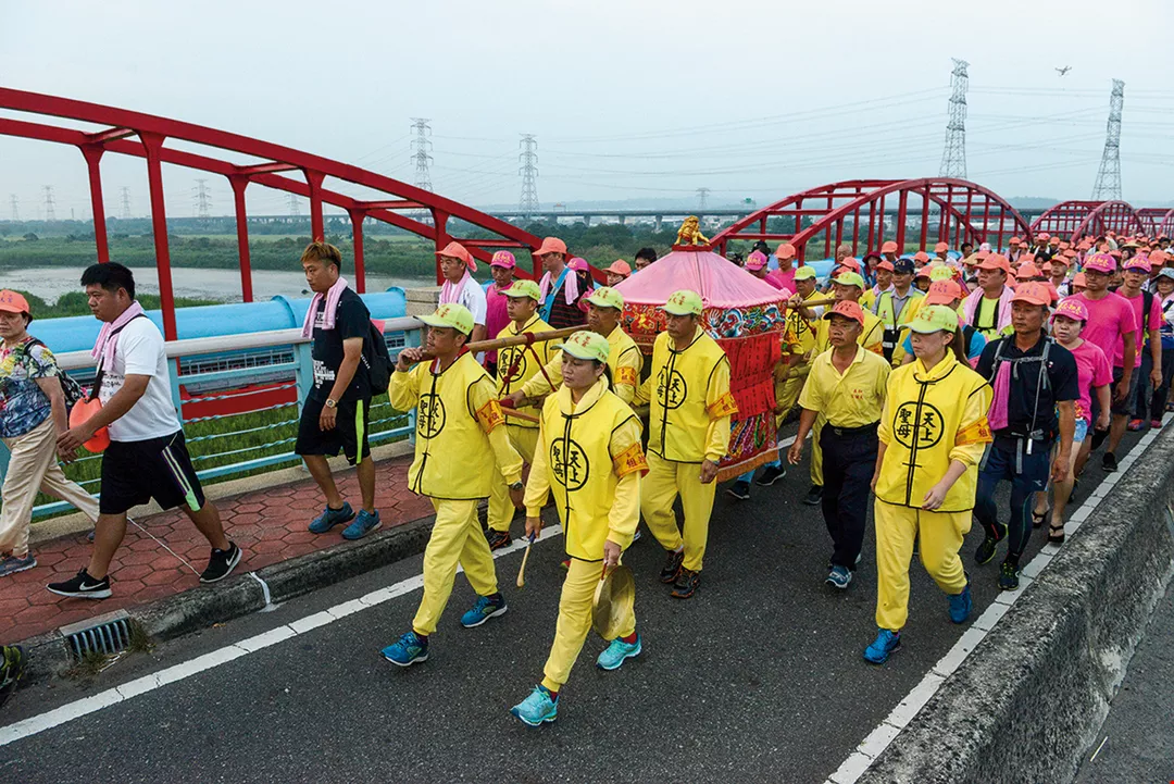 At 11:40 p.m. on May 16, 2018, there was quite a hubbub at Gong Tian Temple in Tong-xiao, Miaoli County, as the annual Bai-sha-tun Mazu Pilgrimage set off. This year Mazu indicated that she wanted to be taken to Chao-Tian Temple in Bei-gang, Yun-lin County, within 36 hours. The round trip of nearly 320 kilometers on foot would be a rigorous test for the temple workers and the faithful.