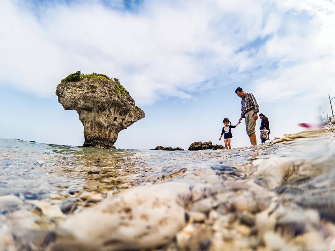 On the coral isle of Xiao-liu-qiu off the coast of Ping-tung County, follow the island’s perimeter road and you can admire the distinctive, jagged reef terrain. Drawn by legend, you stroll through renowned attractions such as Beauty’s Cave and Wild Boar Ditch, observing the fantastical scenery of the reefs set in a habitat teeming with life, which steeps the island in a mysterious ambience.
