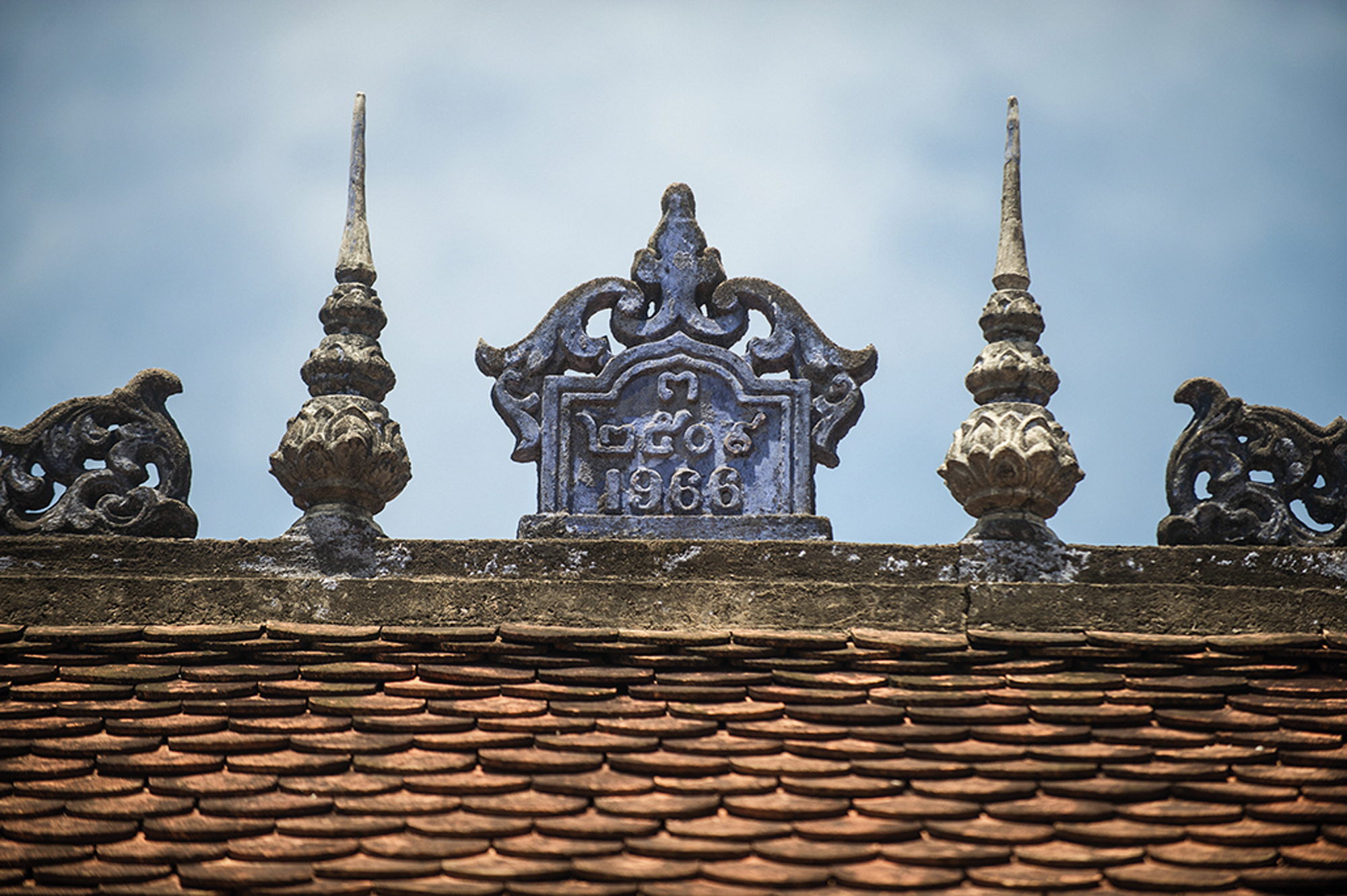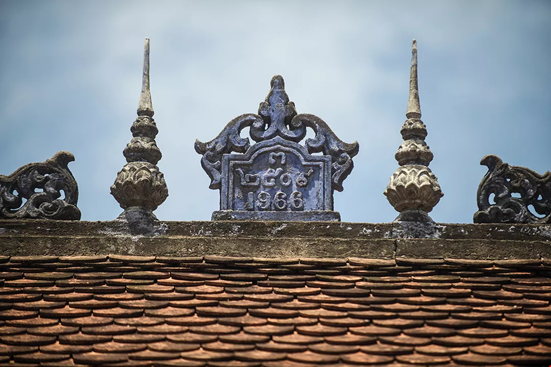 Decorative auspicious elements atop traditional-style sloped roofs usually include the year the building was constructed, as well as religious elements that vary by region.