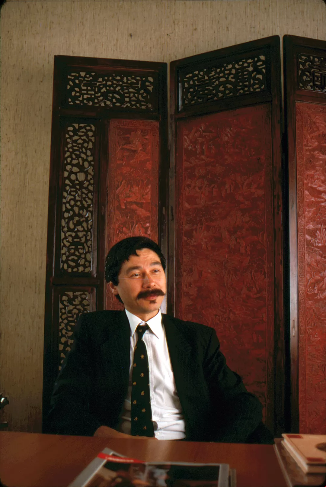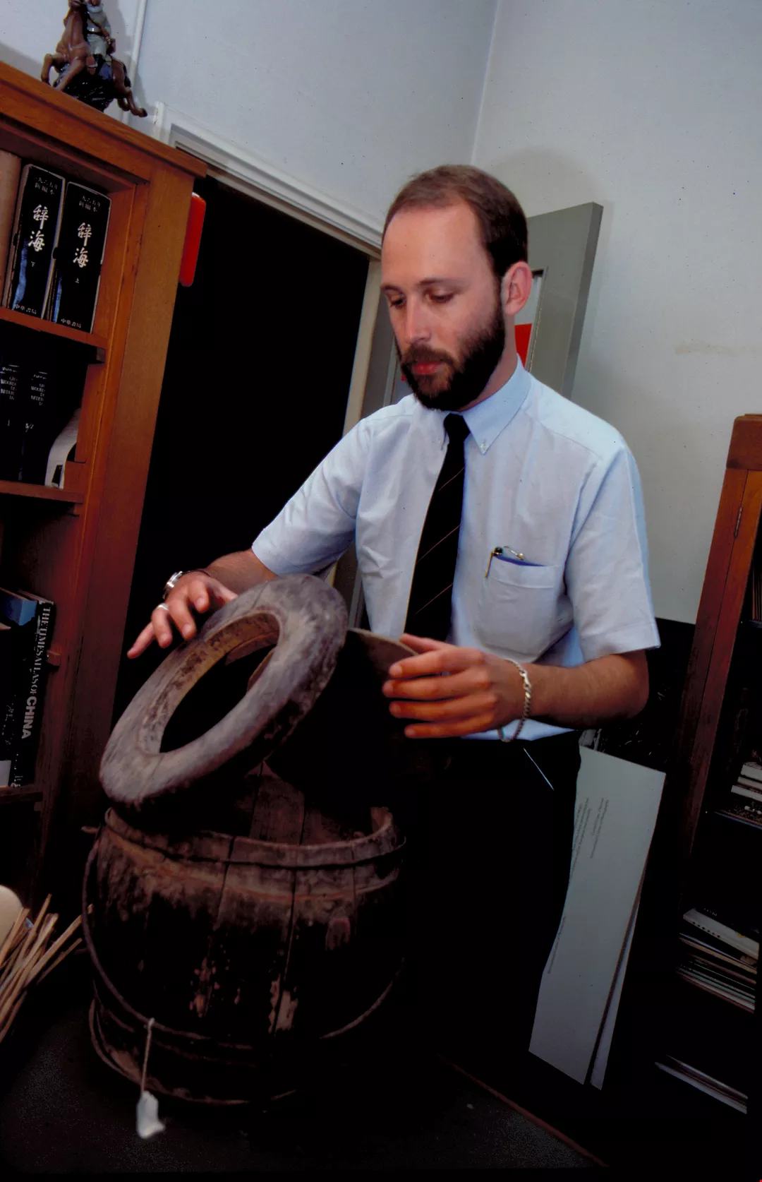 The Ming dynasty lacquer screen behind Director William van Gulik is one of the pieces acquired by his father.