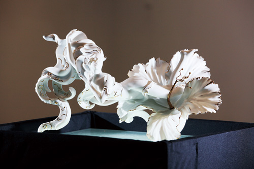 If a fine, fragile piece of white porcelain artwork were crafted without a base or any other visible means of support, then what posture would it adopt? Taiwanese ceramicist Henry Shen is the creator of his own brand, 1300 Only Porcelain, and in September 2010 he introduced the company's new line of products, "720 Degrees: Three-Dimensional Sculpture in the Round," for display at Maison & Objet Paris 2010, a home decor exhibition. His fantastically translucent three-dimensional works, which display little apparent means of support, challenge the limits of ceramic design. They have gained enormous admiration, attracting the attention of buyers from the USA, Britain and Russia, who are talking about franchise agreements. The company has drawn further international attention to Taiwan's booming ceramics scene after the success of Franz Collection Inc., another local company with an international reputation as a producer of fine porcelain