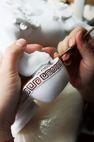 Shen has created an apprenticeship scheme quite unlike traditional ones where trainees begin by cleaning up and making the coffee. Shen's disciples learn by doing. They participate in all parts of the production process including design, mold making and painting. Then according to their performance and aptitude, they specialize in an area of their own interest in order to bring their expertise into full play and gain enjoyment from their work.