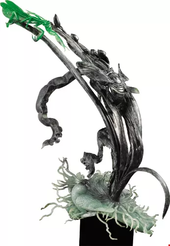 Soofeen Hu spent three years working a hunk of jadeite weighing dozens of kilos to turn out A Singular, Flowing Ease. The piece depicts a decaying lotus leaf, positively gossamer at less than a kilo. In this masterfully executed work, the heft, hardness, and brittle quality that naturally characterize jadeite are completely unapparent. Former director of the National Palace Museum Chin Hsiao-yi praised the work as "unparalleled in its lightness."