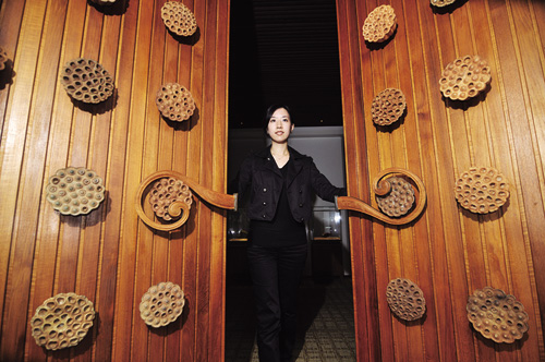 At the Museum of Jade Art, which sits back from the heavily traveled thoroughfare of Jianguo North Road in Taipei, the thick wooden door at the entrance is studded with 36 doornails crafted from jadeite, and qualifies as a work of installation art in and of itself. The look is very much like that presented by the massive doors guarding the entrance to an old Chinese palace. To re-create the look of weathered brass doornails, the artist has gone to the extreme of burying his high-priced jadeite for several months in iron-ore-laden soil at a controlled temperature to oxidize the surface of the jadeite. Unlike ordinary doornails, however, these are all made in the form of lotus seedpods, some laden with seeds, others from which the seeds have dropped, bespeaking the circle of life and death.