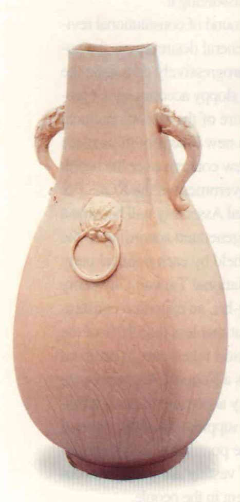 The ruling scholarly elite led all fashions. Like their artist contemporaries, Song-dynasty artisans strove after a simplicity based on "incorporating all that is sublime, but not making a flashy show." A Ru ware narcissus basin, of a shade of blue like a clear sky after rain; a Guan ware dish with a chrysanthemum-petal rim and a crackled-ice-pattern glaze; Ding ware and Yaozhou ware with spirited motifs incised under ivory white or grey-green glazes-with their expert mastery of firing techniques, the Song potters sought to emulate the serene elegance of brush-and-ink calligraphy and painting. "Behind this deliberate abandonment of the bright, rich colors of the Tang and Six Dynasties eras in favor of the simple beauty of monochromes, one senses the rise of rationalism-the spirit of exhaustive enquiry into the nature of all things which typifies the Song-dynasty [Neo-Confucianist] School of Laws," comments Professor Ko Ching-ming of NTU's Chinese department.