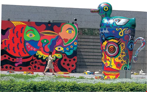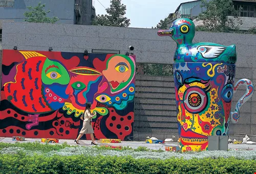 Seek composure amid the hectic pace of life, use space to rediscover humanity. Pictured here is a piece of public art on a Taipei street.