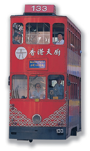 Old trams ply the streets at a leisurely pace that belies the frenetic rhythm of life in Hong Kong.