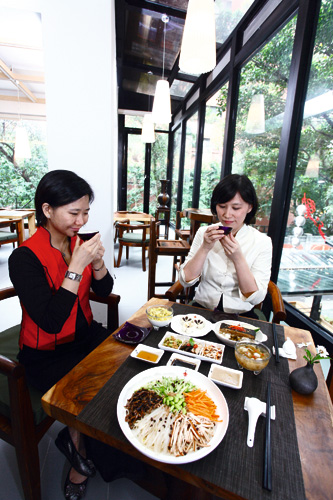 Interest in healthy eating has turned gourmet vegetarian fare into an important part of Taiwan’s vegetarian foods market. The photos at left show two signature dishes from Taoyuan County’s Shuilai Qingshe restaurant: fresh salad and peanut-flavored tofu.