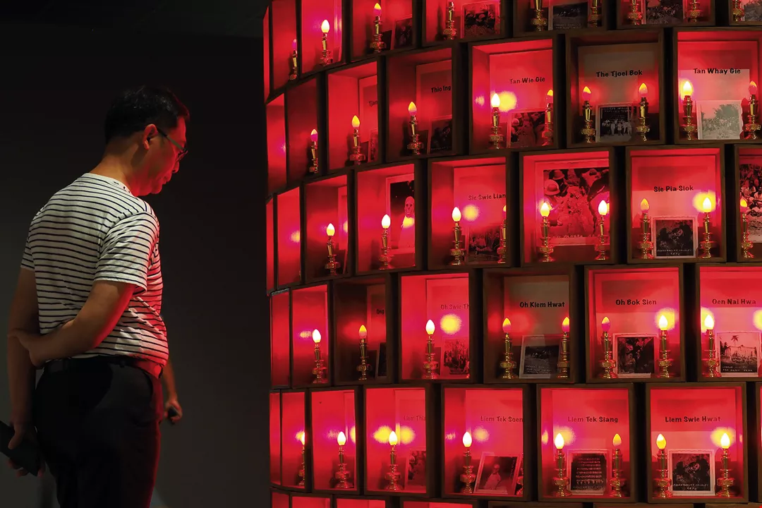 Contemporary art aims to make viewers think. Here, a visitor studies Indonesian artist FX Harsono’s Monumen Bong Belung (Bone Cemetery Monument, 2011). (photo by Jimmy Lin)