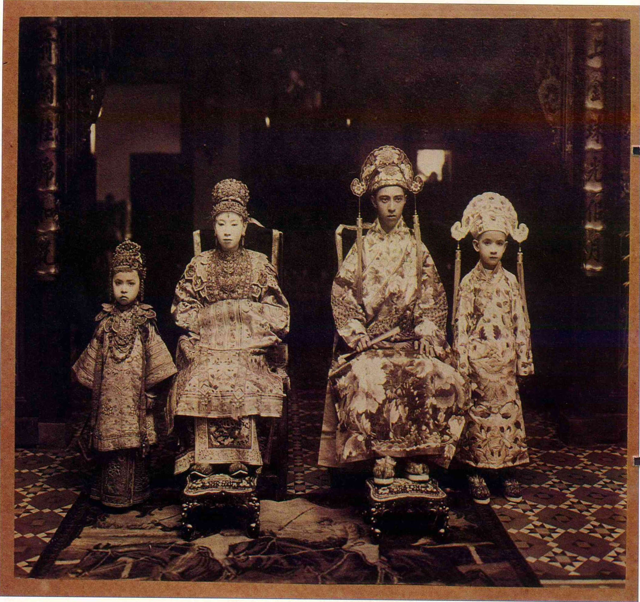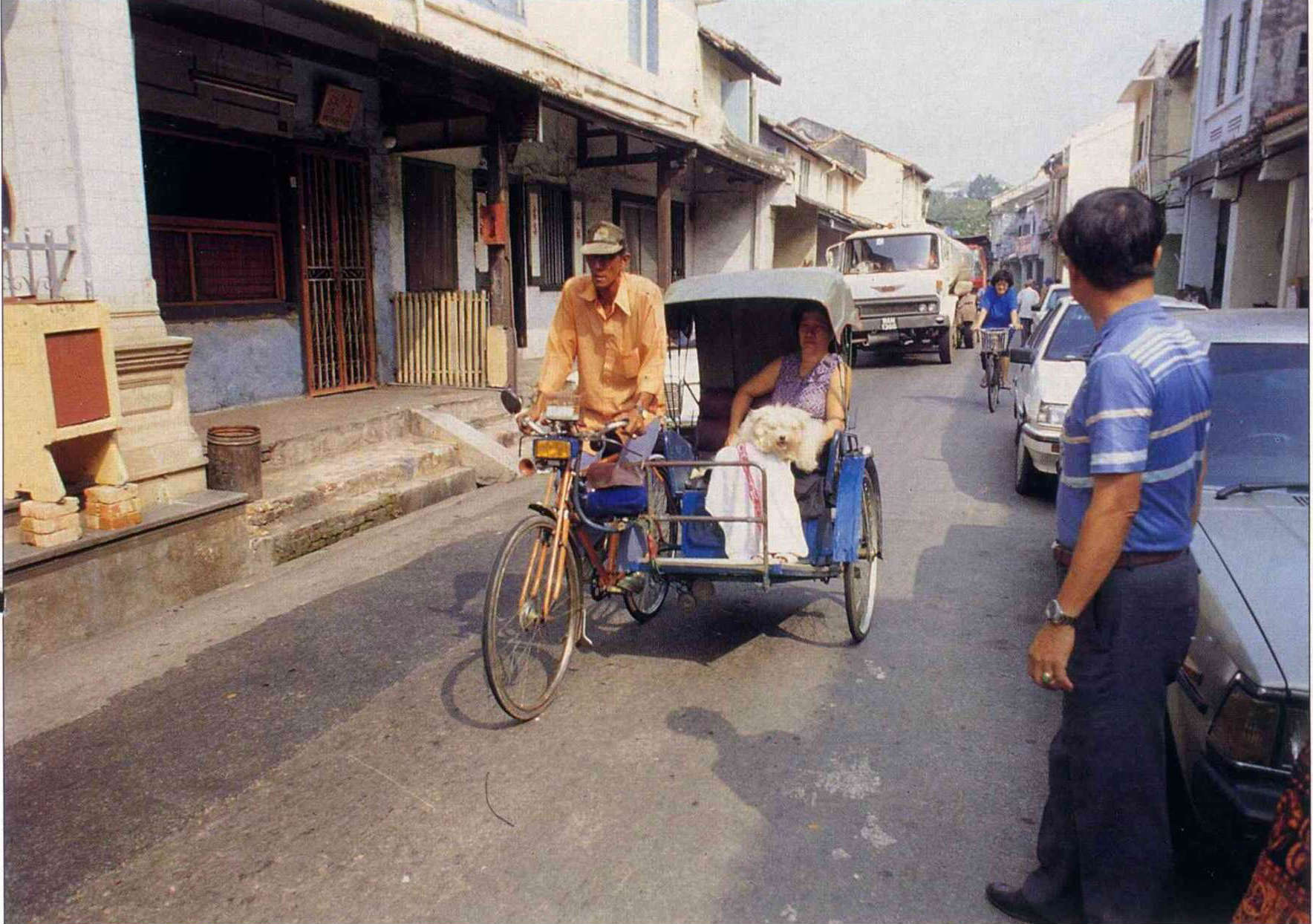 They were the descendants of Malaysian women and Chinese men who immigrated to Malaysia centuries ago. The men were called baba's, and the women nyonya's. One famous baba was the eccentric Confucian scholar Koo Hung-ming of the late Ch'ing Dynasty. Since their fathers were Chinese, they inherited the traditional rites and customs of Chinese culture--they wore traditional Chinese dress at weddings and festivals--but they were thoroughly Malay in terns of their food and drink. Their education was British, and most of them couldn't speak or write Chinese. Thanks to this "triple fusion," to their familiarity with the local language and culture and to their excellent relations with the colonial government, the baba's were generally wealthy, powerful and influential. They were scrupulous about the families they married into, and they lived on Dutch St. generation after generation.