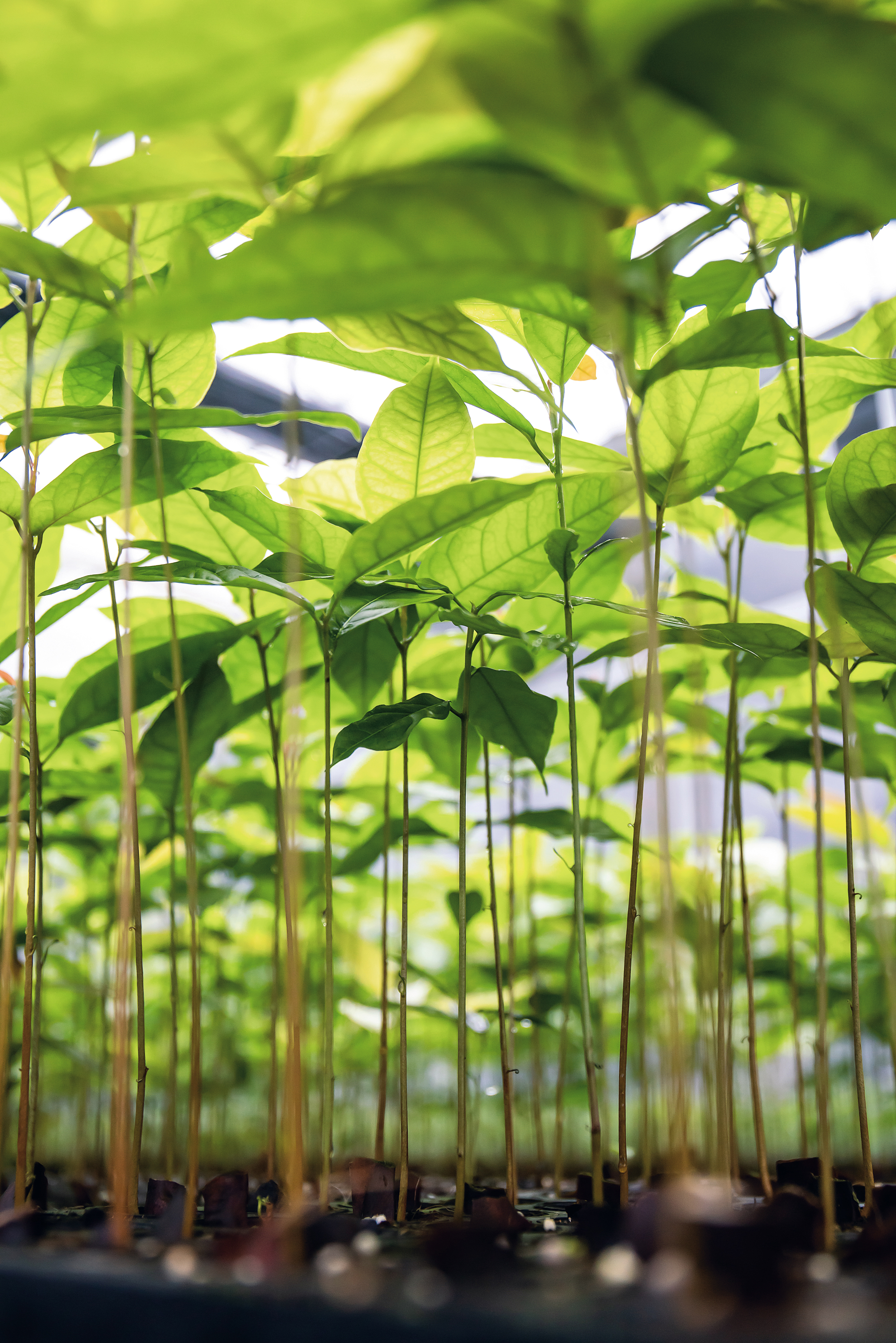 “Come on, let me show you how different forestry is from what you imagine!” Lin exhorts, leading us to a greenhouse with smart environmental controls that was built in May 2020. There, manual work has been reduced to a minimum, with everything—lighting, shade, ventilation, and watering—all handled by computer. Elevated racks are packed with planting tubes containing seedlings of eucalyptus and earleaf acacia (Acacia auriculiformis). Though not especially large, the greenhouse is expansive enough to accommodate some 90,000 plants.