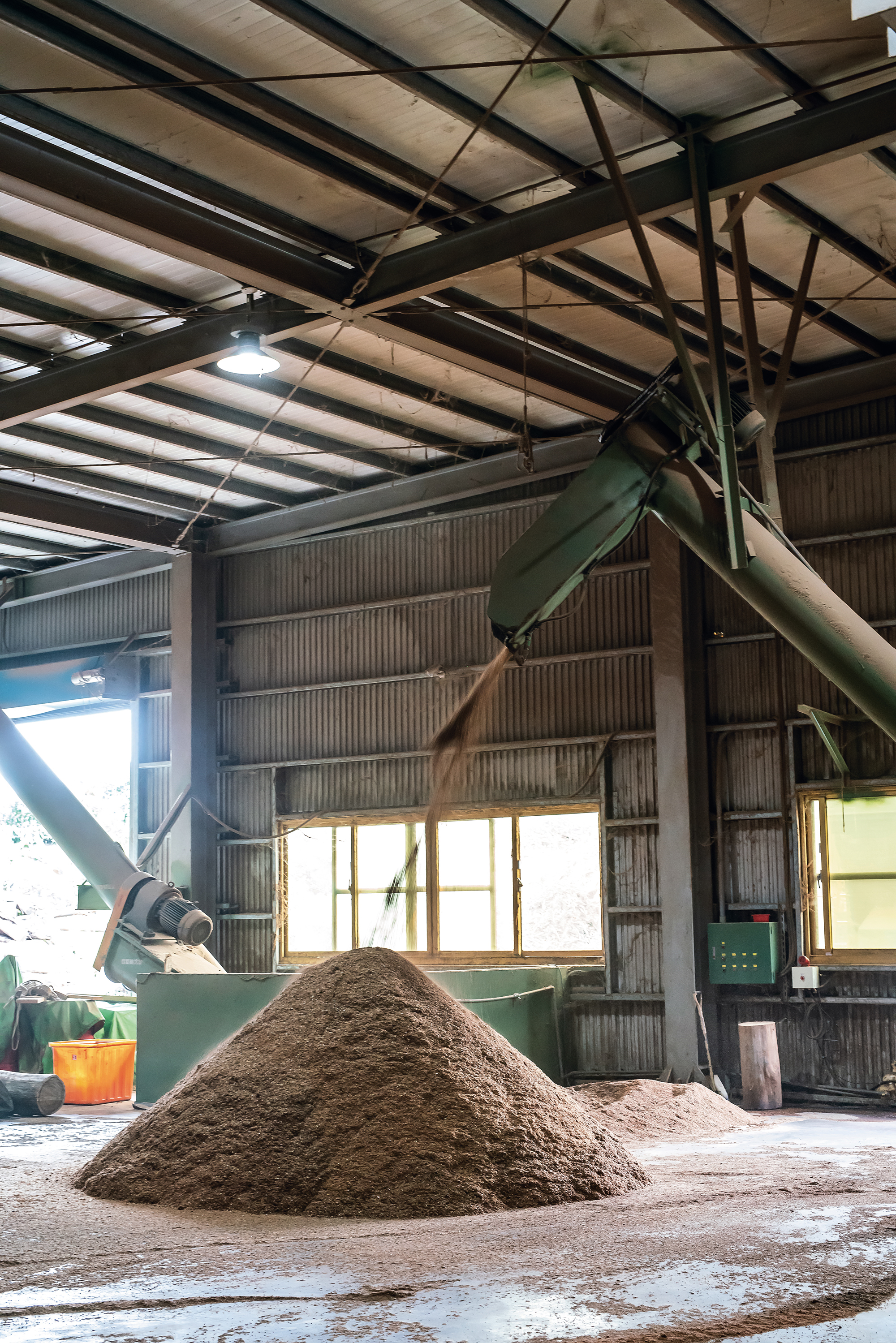 This pain point for mushroom growers opened up space for Yongzai Forestry. The company now emphasizes “whole tree utilization,” getting maximum value out of the lumber while also transforming the trash into “100% pure” woodchips. They churn out chips in twice the quantity of other chippers, and even though their price is higher, they still can’t keep up with demand.