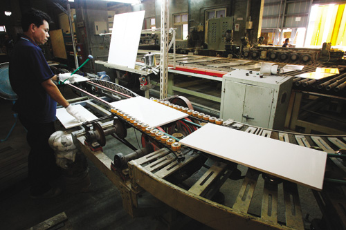 Industries making goods for daily use, which depend primarily on domestic sales, are likely to be hit especially hard by ECFA. The government should propose measures and transformation plans as quickly as possible to assuage the worries of businesses and the public. The photo shows a floor-and wall tile production line located in Yingge.