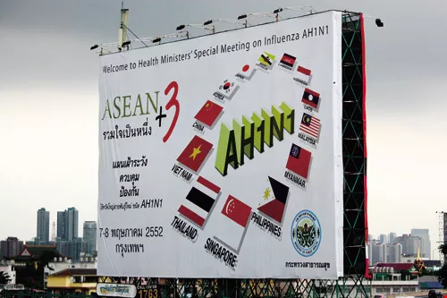 In an effort to address the outbreak of the AH1N1 flu, the health departments of the 13 nations that comprise ASEAN Plus China, Japan, and Korea held a planning meeting in Bangkok this May. Billboards relating to the meeting towered over the streets and indicated just how rapidly Southeast Asian integration is progressing.