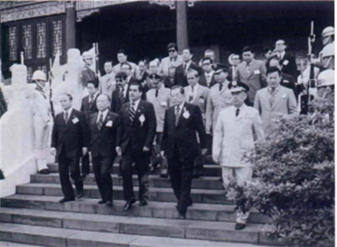 The delegates pay their respects at the Martyr's Shrine, in Taipei