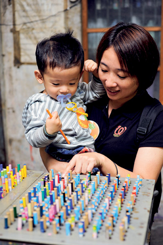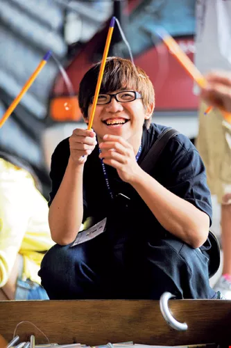Visitors, whether big or small, have their own unique memories about pencils. Here, under the tutelage of a Rabbit guide, they fish for pencils using hooked lines tied to the ends of other pencils. The winner gets a prize!