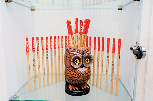 Standing in front of the school gate, Tang holds a 220-centimeter pencil, which is taller than the mainland Chinese basketball player Yao Ming. With great feeling, he says that pencils accompany artists as they sketch, are used by scientists to explore new frontiers of knowledge, and have even accompanied astronauts into space. And unlike the writing made with fountain or ballpoint pens, pencil marks won't fade. The mission of the Rabbit Pencil School is to disseminate information about the history of pencils and ensure that pencil culture never dies.