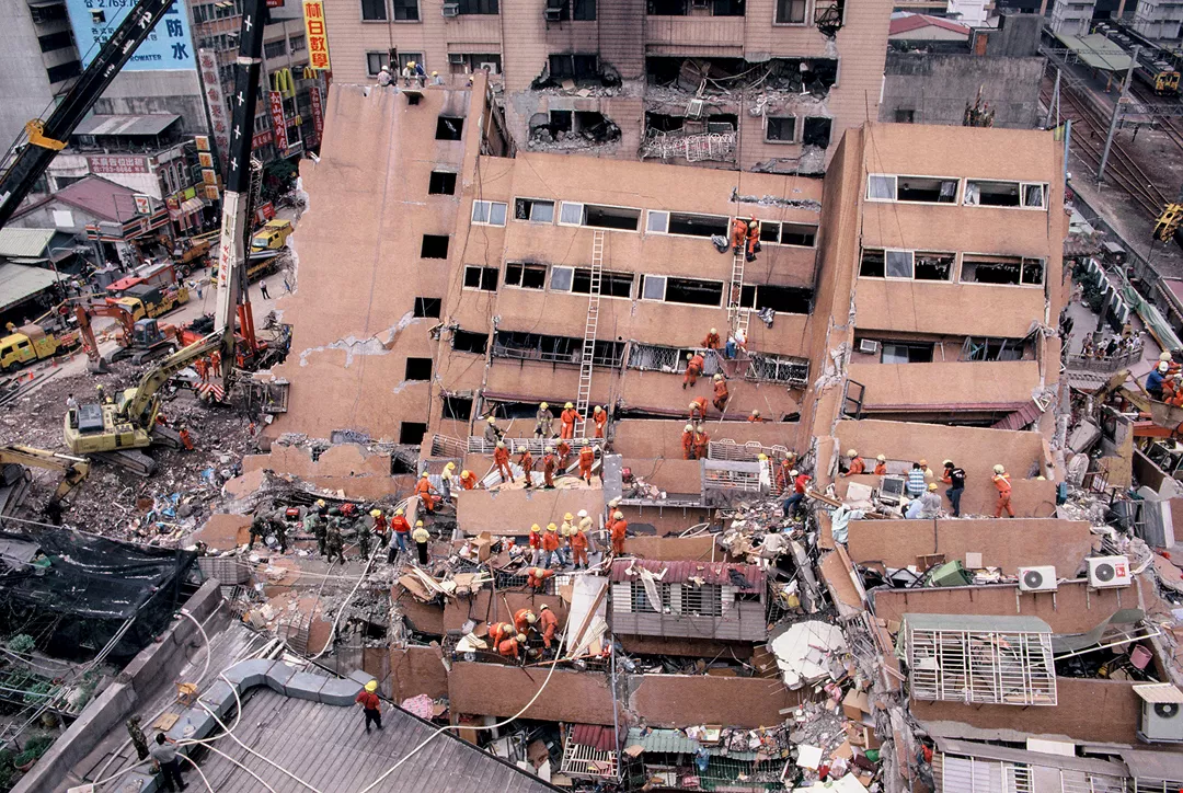 In 1999, the powerful Jiji earthquake brought down the Tung-hsing Building in Taipei, 150 kilometers from the epicenter. (Ministry of Foreign Affairs file photo)