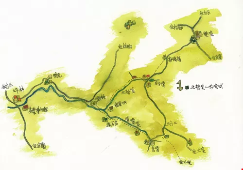 The liveliness of those days is a contrast to the easygoing quiet of today that makes it a getaway destination for harried city dwellers. Liu recommends that travelers visit Changyuan Village, nearby Mana Mountain Villa, and Waigan Village together as part of their trip to Ganjiaocheng. It’s best to come by train, get off at Shuangxi, and take the public bus to Waigan. From there you can walk across the bridge to experience the sensation of entering the small town.