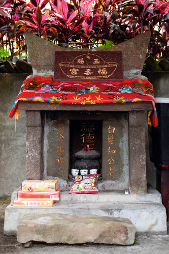 In front of an Earth God shrine at the head of the path to Hubao Lake, Liu Ka-shiang starts to explain how to examine such shrines.