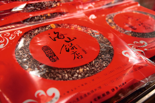 Shuangxi’s Haishan Cake Shop and terraced field farmers from neighboring Gongliao have cooperated to sell gift boxes of puffed-rice cakes made of local rice.