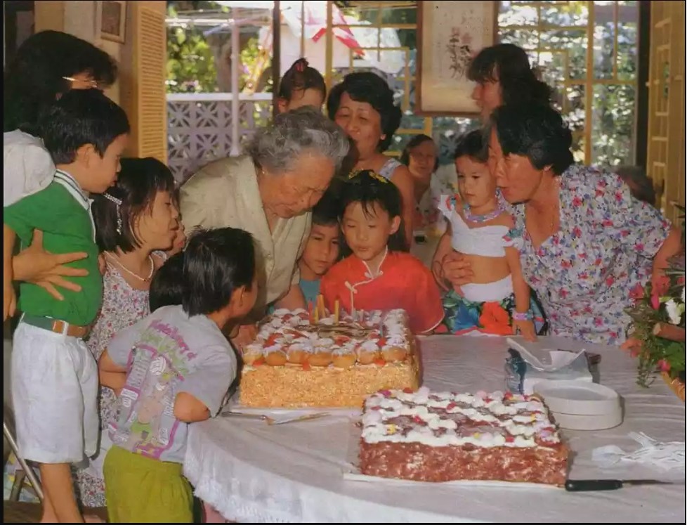When an elderly Chinese woman has a birthday, she is surrounded by grandchildren of mixed French and Polynesian ancestry.