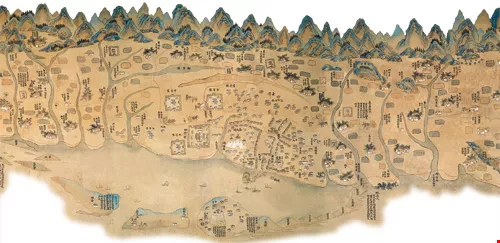 A hand-drawn map of Taiwan dating to the reign of the Kangxi Emperor.