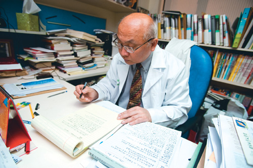 A messy desk belies the well-ordered mind of Chen Yao-chang, who pores through both historical records and medical texts in his office.