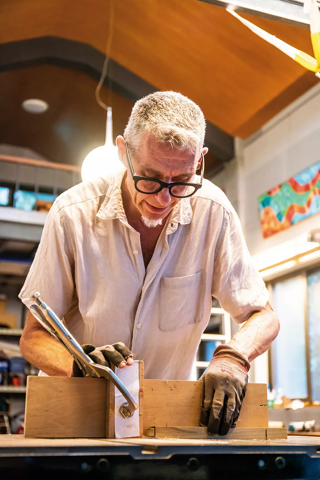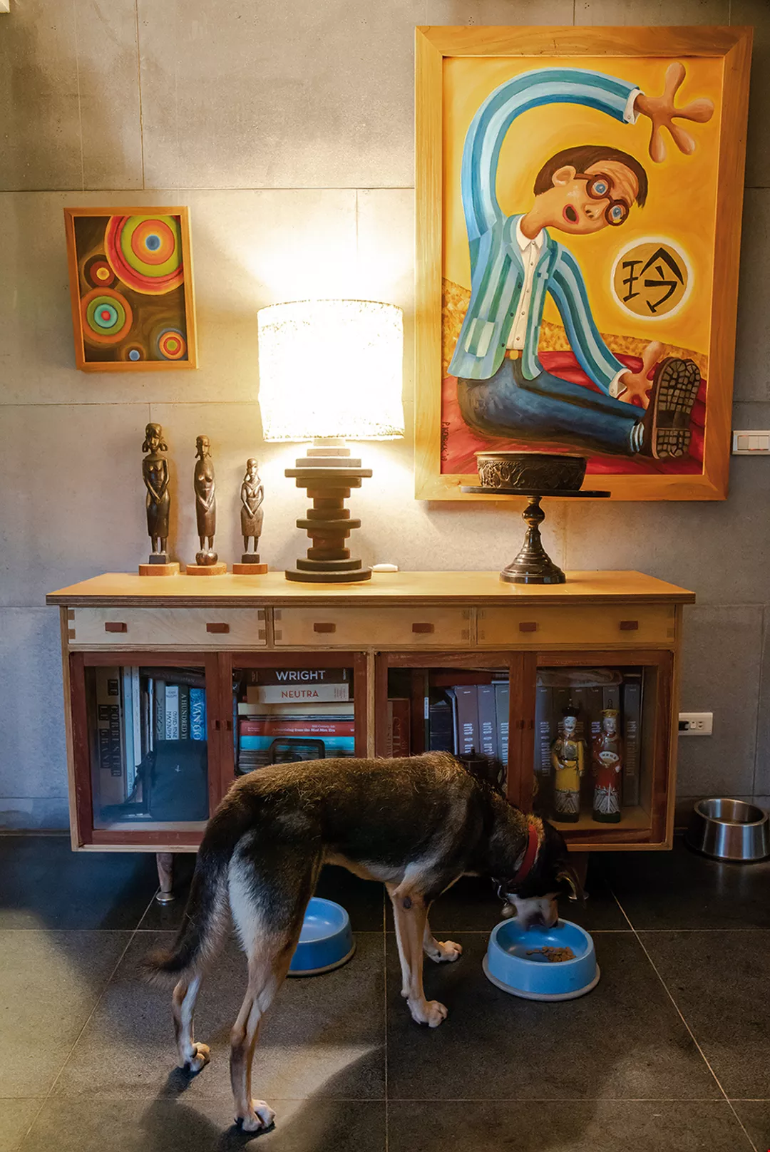 Kenrick made the cabinets, dining chairs and some of the lamps in his home himself.