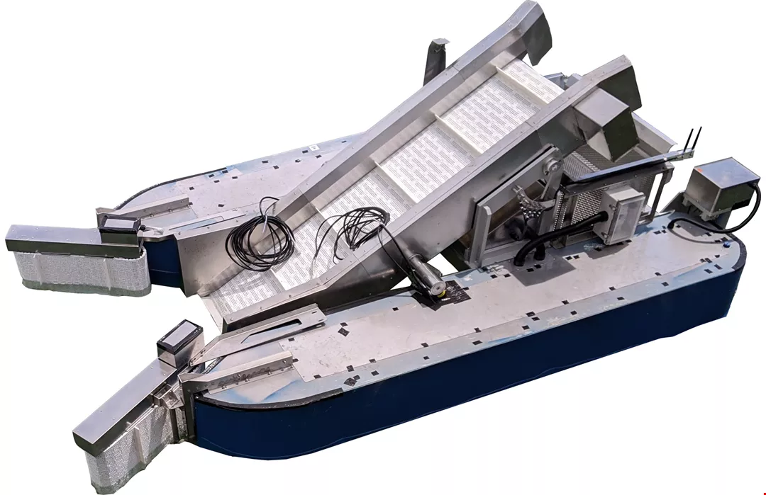 The first generation trash skimmer was little more than a pump and a conveyor belt. (courtesy of Team Azure)