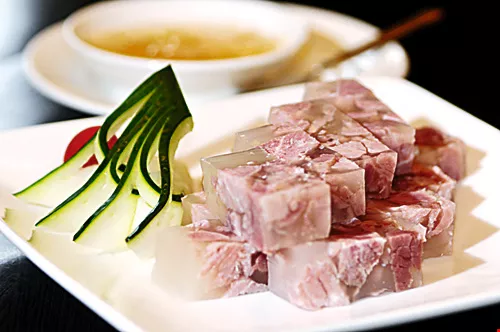 To prepare pork trotters in aspic, scrape and wash the pork shanks, rub the pork shanks evenly with nitrates, coarse salt, star anise, cinnamon and Sichuan pepper, and marinate for three days. Then soak in clean water for 10 hours, remove and wash in warm water.